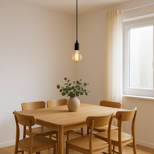 Colgante Florón Negro Cable 1m Textil Blanco/Negro