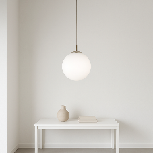 Colgante Globo Vidrio Opal c/ Acero Níquel