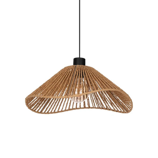 Lámpara colgante E27 decorada con hilos papel marrón