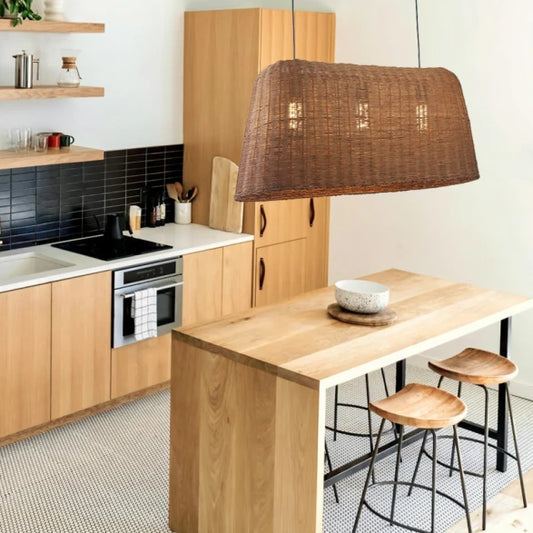 Lámpara colgante ratán apaisada 3xE27 1000x400mm