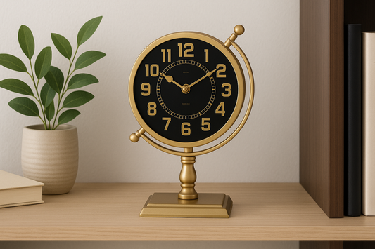 RELOJ DE MESA HIERRO D20X29X8CM NEGRO Y DORADO