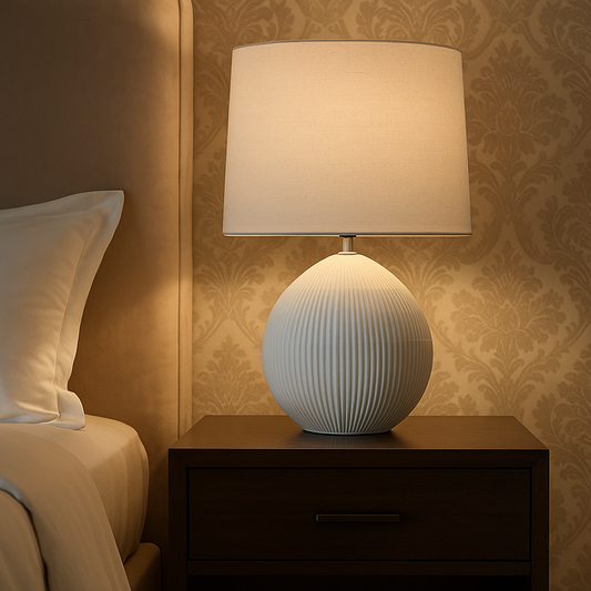 LAMPARA MESA CERAMICA D40x60CM TEXTURA BLANCO