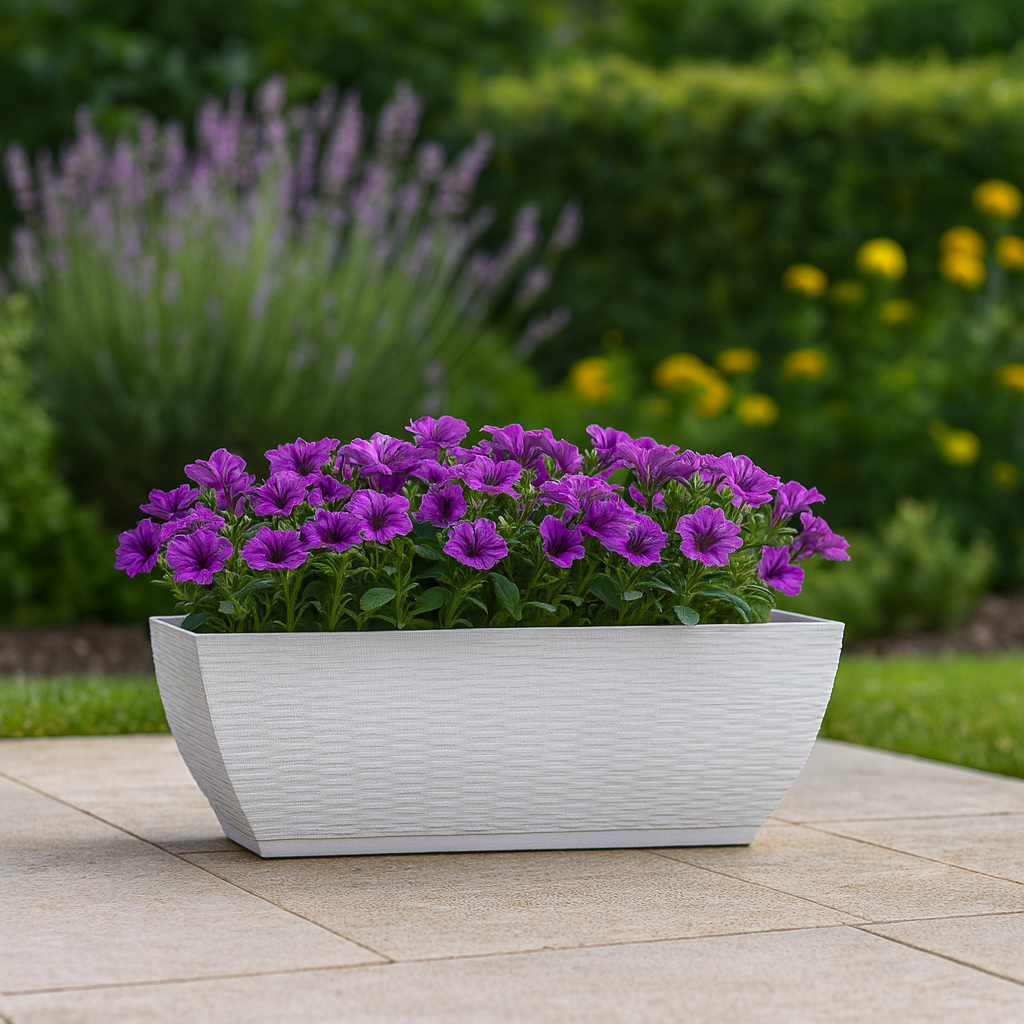 Aporta armonía y calidez a tu casa o jardín con la línea de macetas Ámsterdam Graphito de Floridis. Práctica y resistente, esta maceta de 48x16 cm. en color blanco es perfecta para tus plantas de interior o exterior.