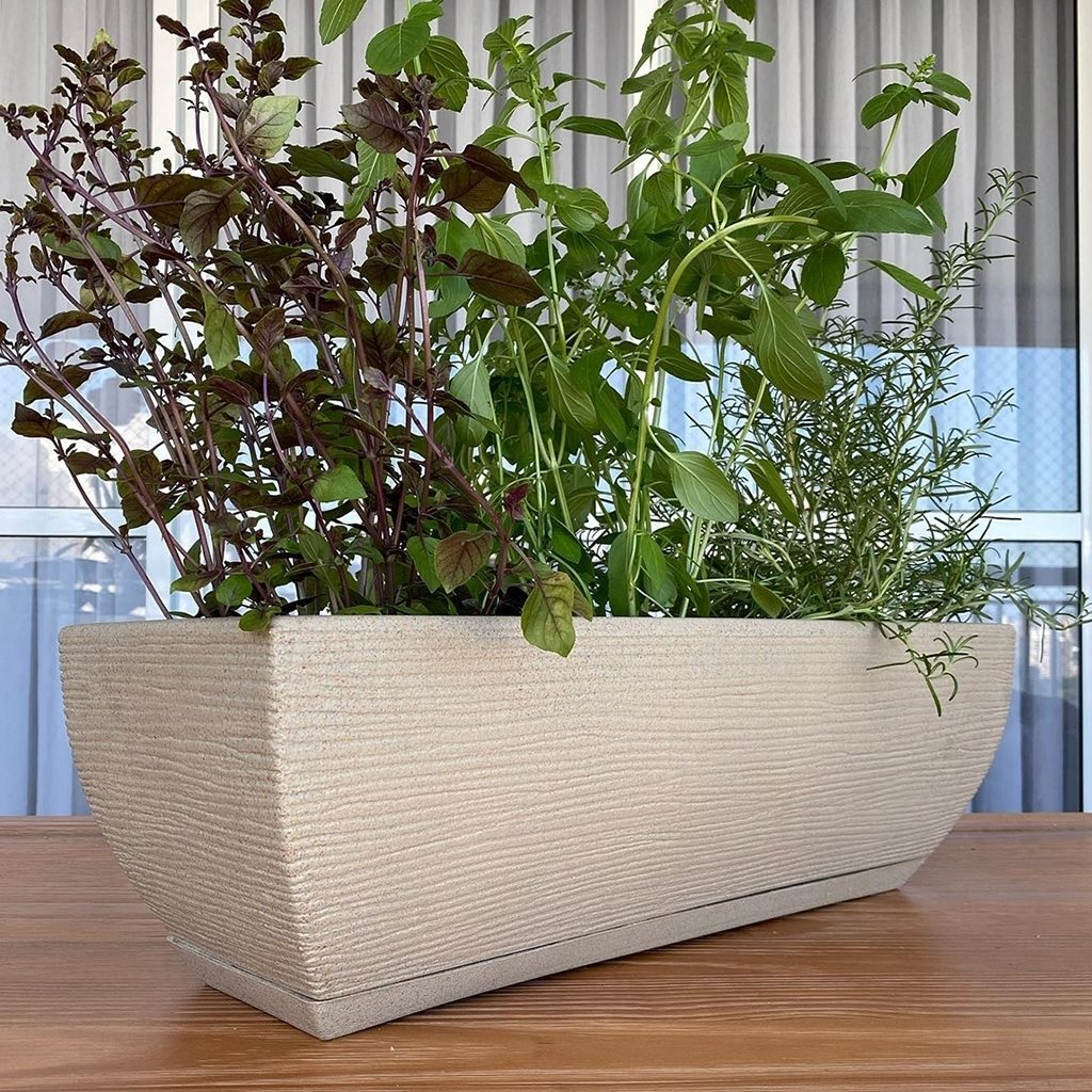 MACETA 48X16CM AMSTERDA GRAPHITO EFECTO PIEDRA GRIS