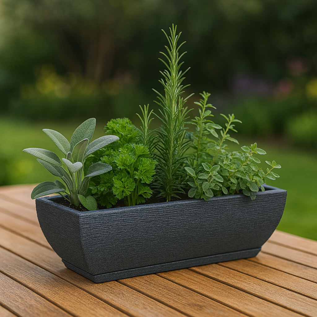 Aporta armonía y calidez a tu casa o jardín con la línea de macetas Ámsterdam Graphito de Floridis. Práctica y resistente, este macetero rectangular de 48x16 cm. en color gris oscuro y textura símil piedra es perfecto para tu terraza o jardín.