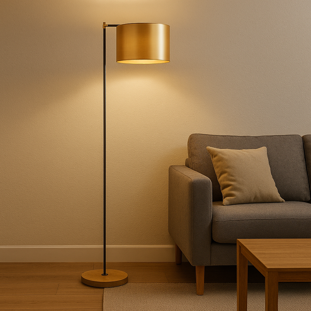 LAMPARA DE PIE 32x40x152CM SEDA/METAL DORADO/NEGRO
