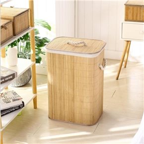 CESTO PLEGABLE 40X30X60CM C/TAPA,FUNDA BAMBÚ NAT.