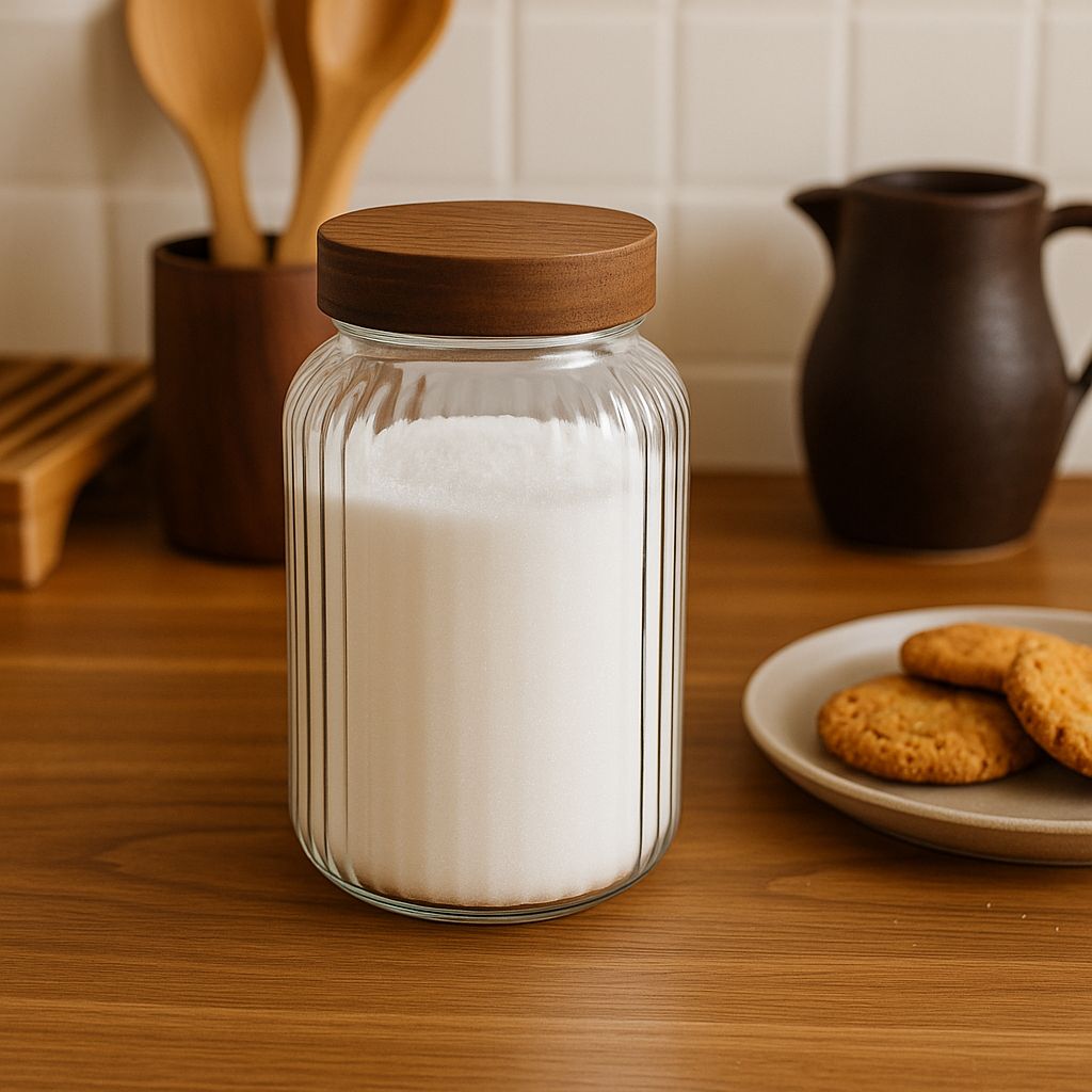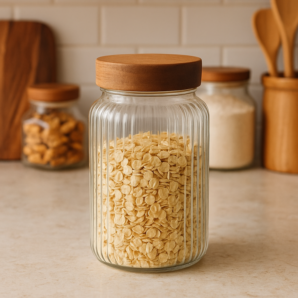 RECIPIENTE VIDRIO LABRADO C/TAPA MADERA 1000ML 11X11X16.5CM