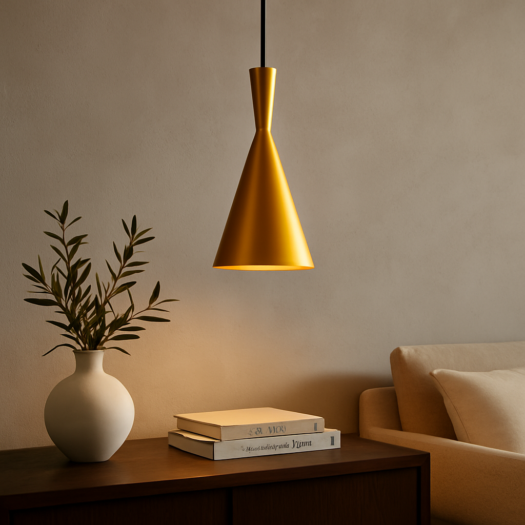 Con medidas de 19 cm de diámetro y 36 cm de altura, esta luminaria tipo campana es perfecta para comedores, barras, livings modernos y espacios comerciales que buscan una iluminación focalizada con un toque lujoso y distintivo.
