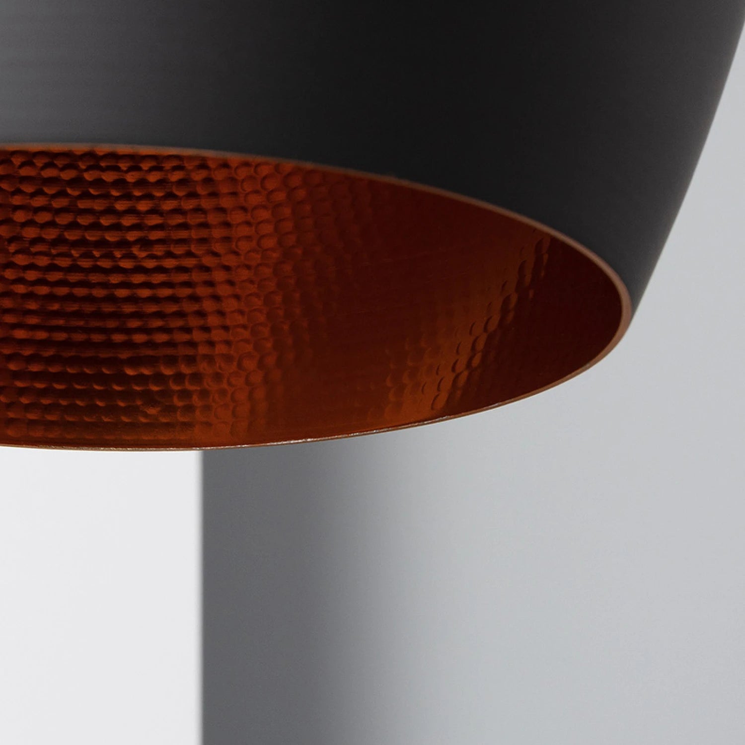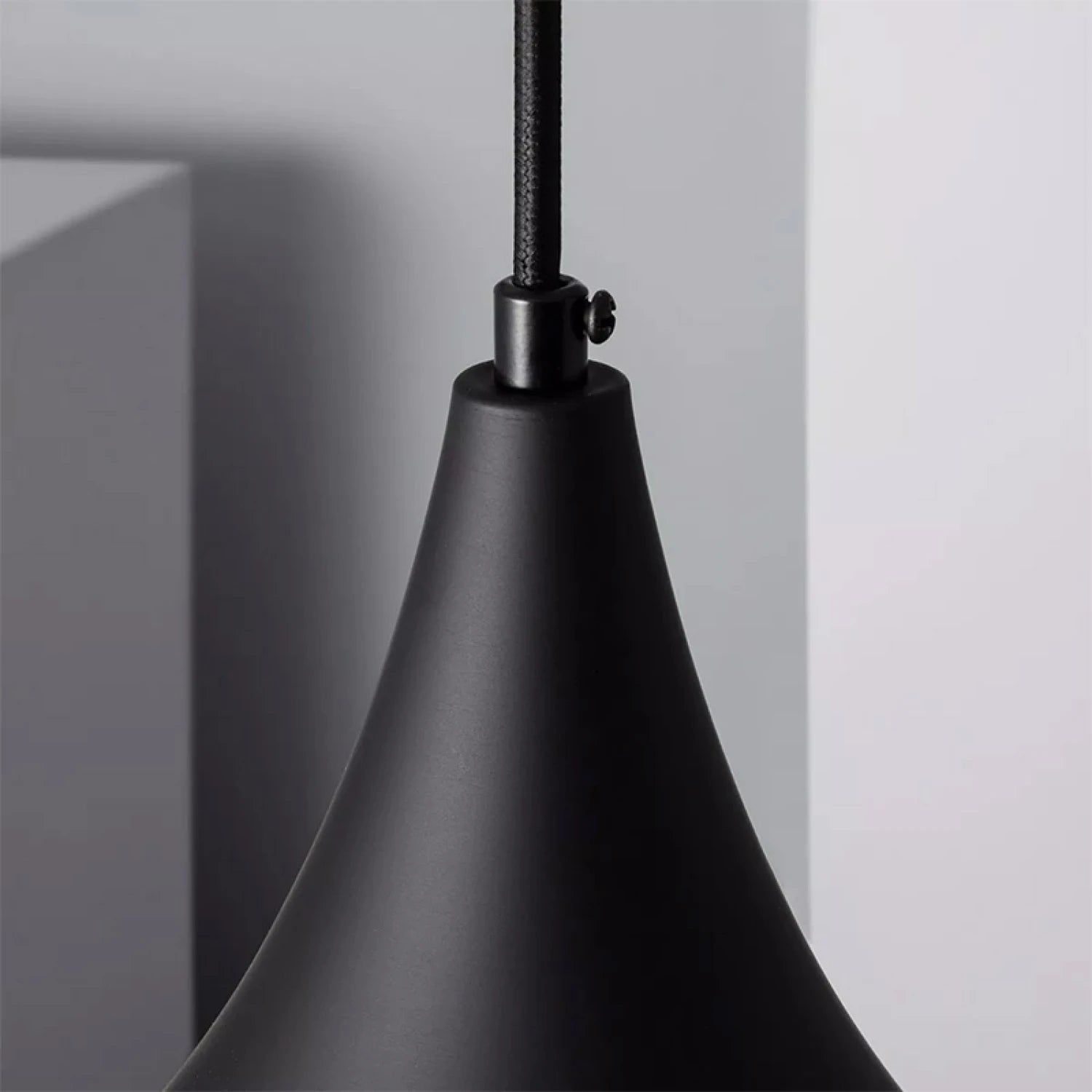 Con un acabado en color negro y un formato suspendido desde el techo, esta luminaria se adapta perfectamente a comedores, salas de estar, locales comerciales o recepciones. Su ángulo de apertura de 180° asegura una iluminación amplia y uniforme, mientras que su diseño minimalista sin difusor aporta un toque moderno e industrial.