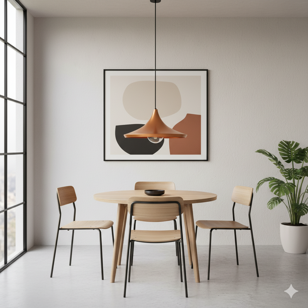 ARTEFACTO CAMPANA DECORATIVA GEISHA 3 GOLDEN Lámpara suspendida con acabado en cobre electrochapado tanto en el exterior como en el interior. Fabricada en aluminio con un diámetro de 36 cm y una altura de 16 cm. Diseño de TOM DIXON.