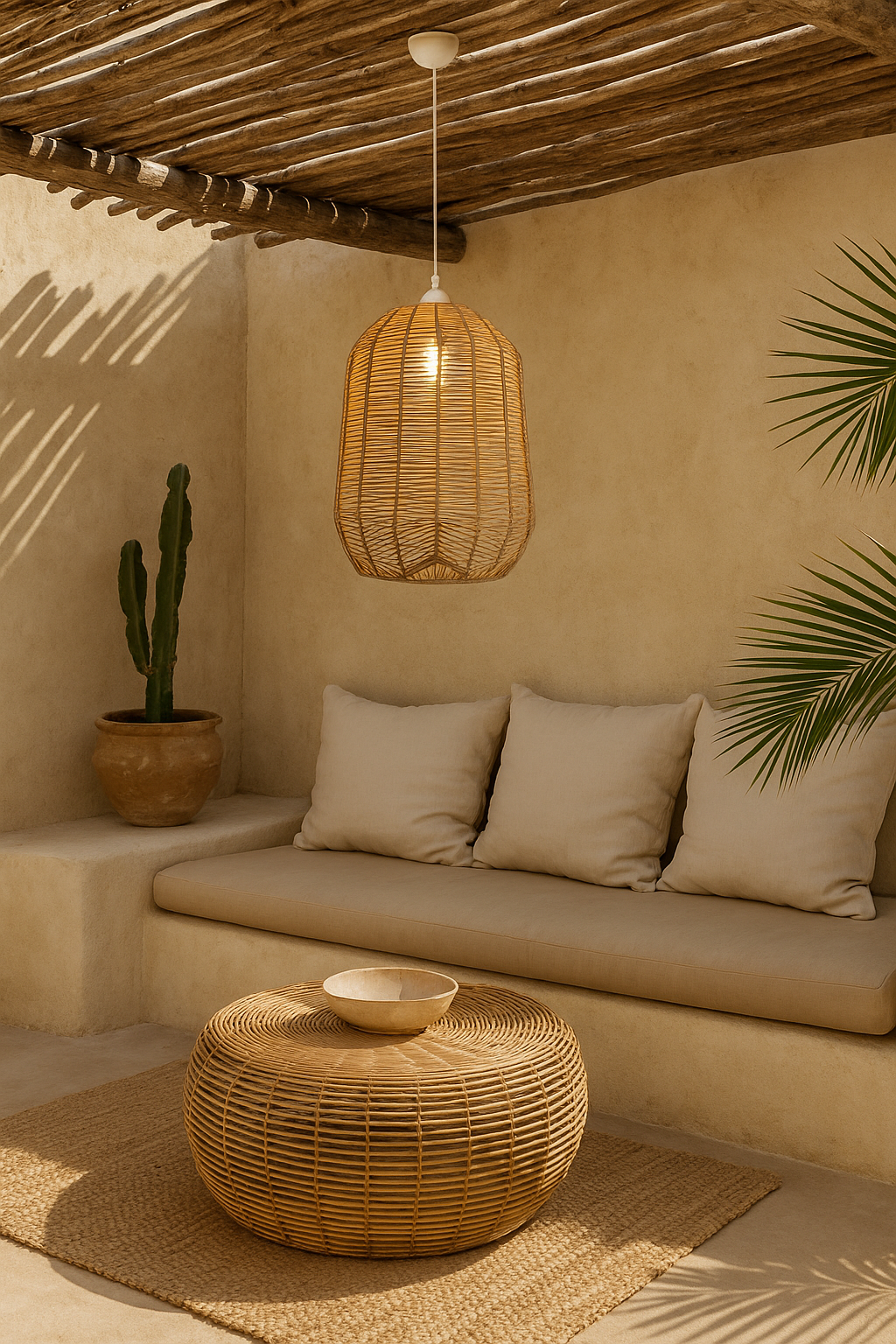 El colgante Clara combina metal y ratán en un diseño artesanal y elegante que aporta calidez a cualquier ambiente. Su pantalla tejida a mano permite que la luz se filtre suavemente, creando un efecto acogedor y relajante. Con un estilo boho y natural, es ideal para livings, comedores, dormitorios o espacios al aire libre techados, logrando un ambiente sofisticado y a la vez descontracturado. Funciona con portalámpara E27 de hasta 40W y sus medidas son 24 cm de diámetro por 37 cm de alto.