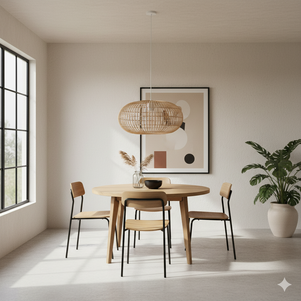 El Artefacto Colgante Decorativo Magdalena es una lámpara colgante elegante y funcional, ideal para realzar cualquier ambiente moderno. Con un acabado blanco, está diseñada para utilizar una bombilla E27 de hasta 40W, ofreciendo una iluminación eficiente y adaptable. Su estructura combina metal resistente con rattan natural, aportando un equilibrio perfecto entre robustez y un toque artesanal que añade calidez visual. Sus dimensiones, 460 mm de diámetro y 270 mm de altura, la hacen apta para múltiples espacios como comedores, salas o áreas de trabajo. La lámpara Magdalena destaca por su diseño refinado y capacidad para crear ambientes acogedores con luz directa y difusa.