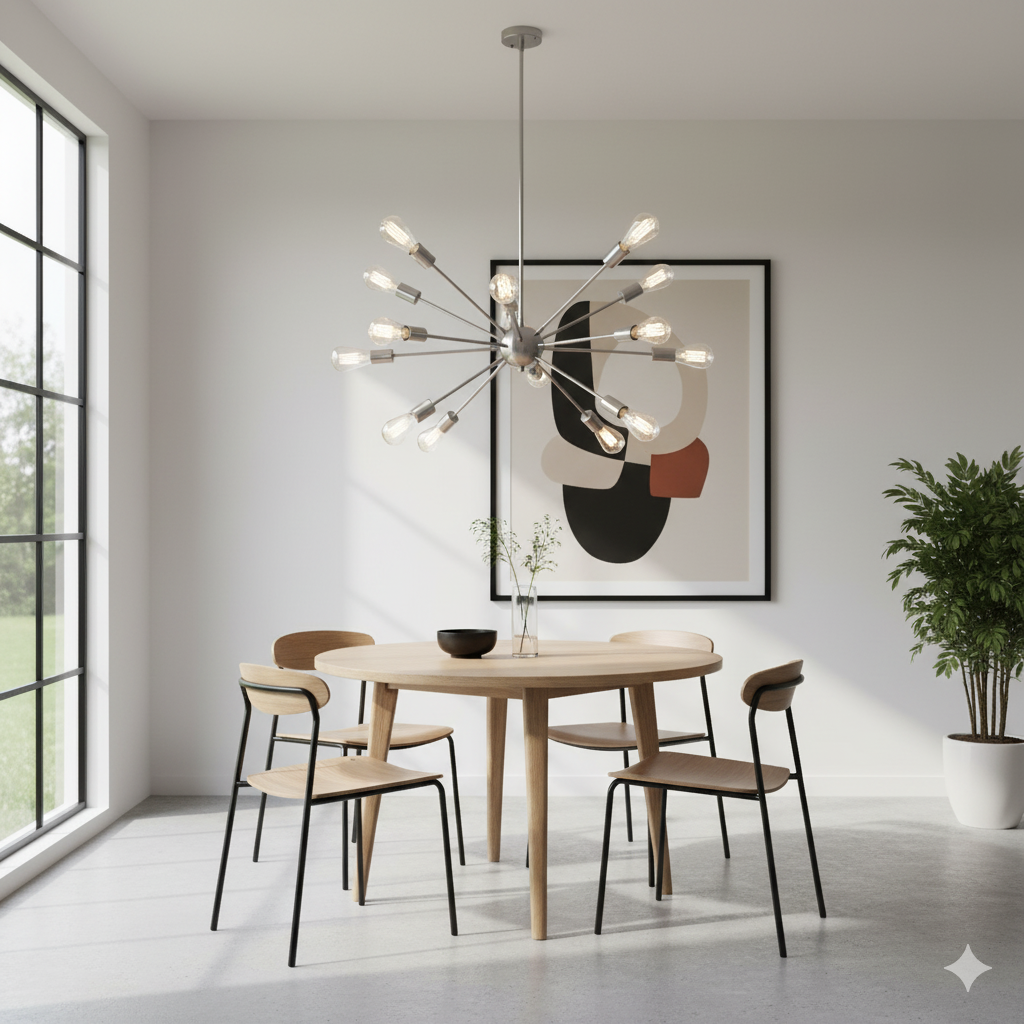 El Artefacto Colgante Decorativo Tropea en acabado cromado combina un diseño minimalista con una iluminación funcional. Con un casquillo E27 que admite bombillas de hasta 40 W, ofrece versátiles opciones de iluminación. Con un diámetro de 800 mm, esta lámpara colgante impone presencia sin pantallas, realzando su elegante base y brazo metálicos con acabado cromado para mayor durabilidad y un atractivo moderno. Ideal para espacios contemporáneos, proporciona una iluminación eficiente y elegante, de fácil instalación y mantenimiento.