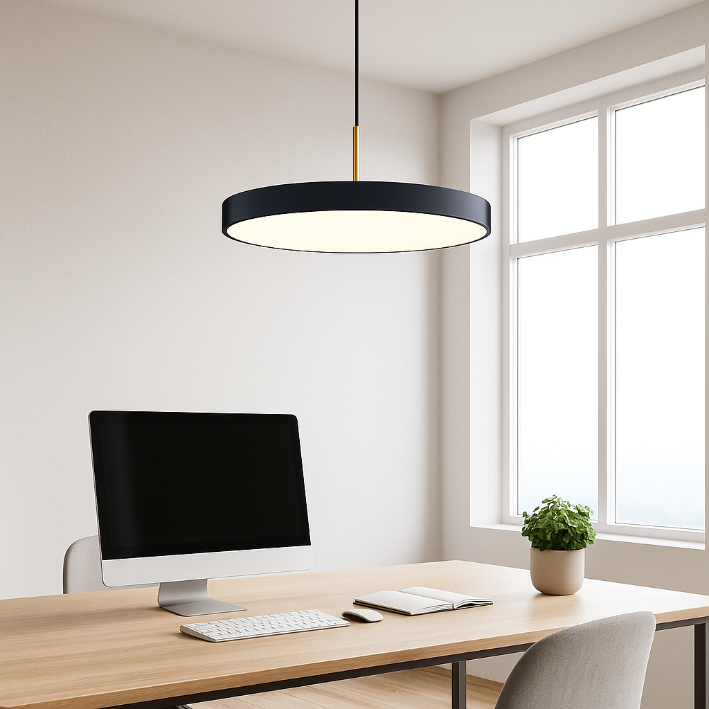 Dale un toque moderno y sofisticado a tus espacios con la lámpara colgante Florence Mediano. Con diseño minimalista en acrílico y metal, ofrece una iluminación LED de 36W con vida útil superior a 50.000 horas, ideal para oficinas, comedores o salas de reuniones. Su elegante acabado en negro con difusor blanco brinda una luz uniforme y eficiente, combinando estilo y funcionalidad en un solo producto.
