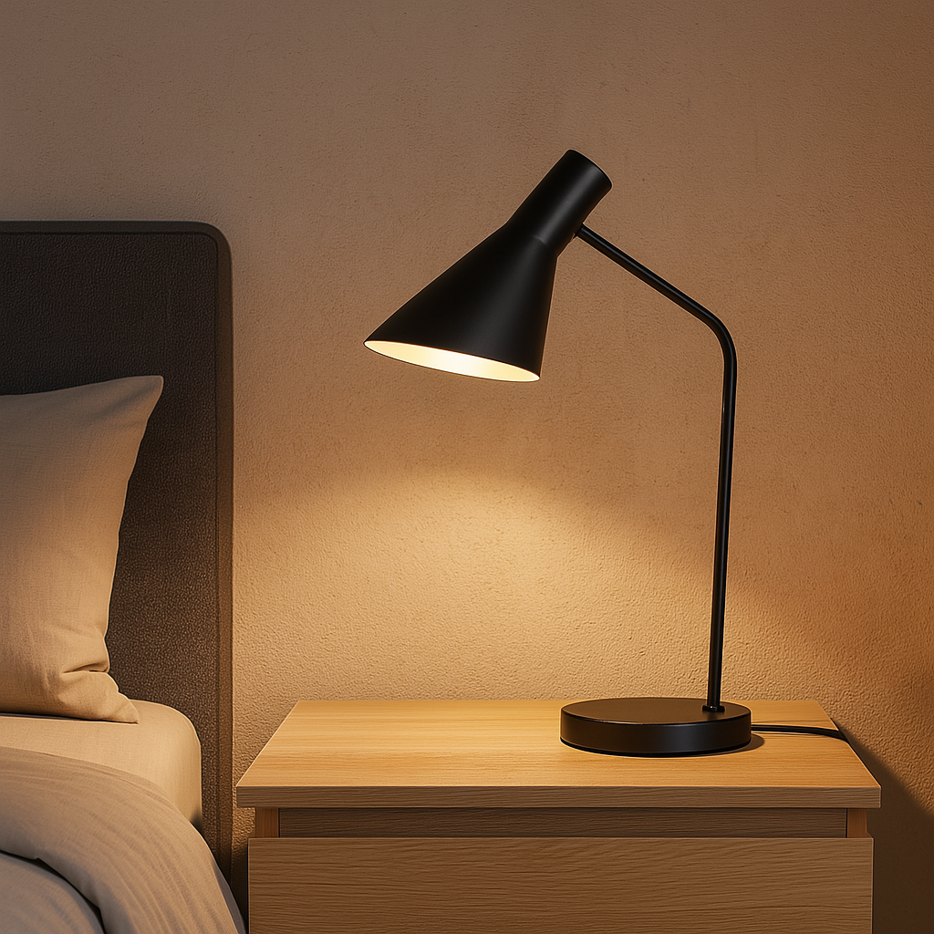 La Jetson fusiona clasicismo escandinavo y actitud contemporánea en un gesto mínimo. Su estructura de hierro, lacada en negro arenado, destaca por la pureza de líneas: base circular sólida, fuste delgado y pantalla cónica orientable que dirige la luz donde la necesitas. Incorpora un portalámparas E27 (bombilla no incluida) para que elijas temperatura y flujo a tu gusto. Ideal como lámpara de lectura en el escritorio o punto de luz ambiente sobre mesas auxiliares, aporta carácter sin recargar el espacio: diseño funcional y sobrio pensado para durar.