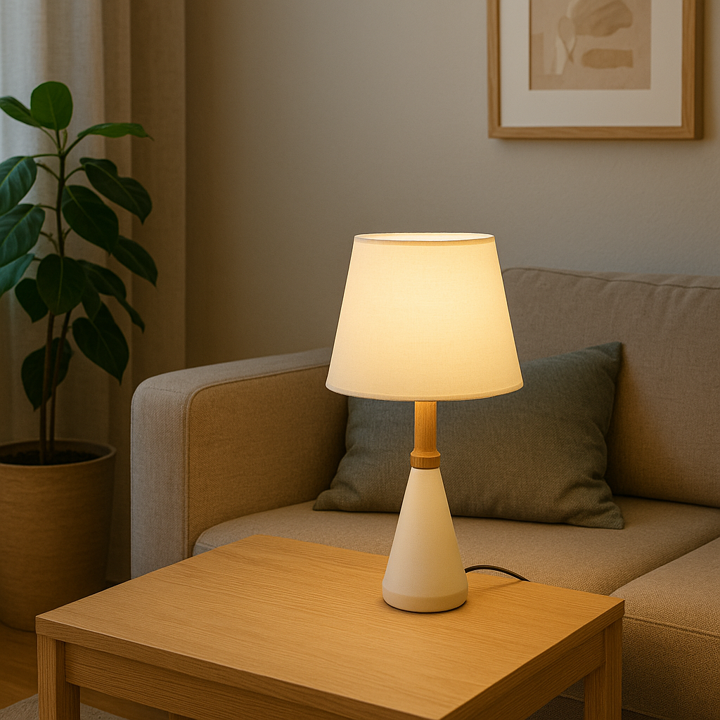La lámpara Marco combina una base cónica de cerámica blanca mate con un elegante detalle de madera natural y una pantalla textil que emite una luz cálida y acogedora. Con 34 cm de alto y 20 cm de diámetro, es perfecta para iluminar mesitas de noche, escritorios o salas de estar. Incorpora casquillo E27 (bombilla LED no incluida) y funciona a 220‑240 V. El interruptor en el cable facilita su encendido. Ideal para ambientes nórdicos, minimalistas o contemporáneos, aporta un toque de diseño y serenidad a cualquier espacio.