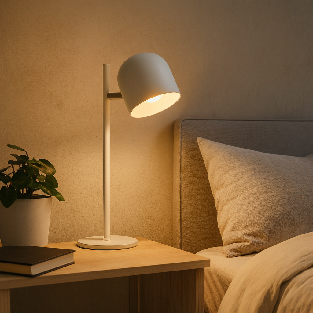 La lámpara de mesa Mónaco en acabado blanco mate aporta un aire fresco y luminoso a cualquier espacio. Su base circular de 11 cm de diámetro y su mástil delgado en metal ofrecen estabilidad sin restar ligereza visual. La pantalla de 18 cm de ancho, articulada sobre un eje que permite orientar el haz de luz, culmina en una altura total de 53 cm, ideal para mesas de trabajo o mesitas de noche. Equipada con casquillo E27 y compatible con bombillas de hasta 40 W (no incluida), brinda una iluminación puntual y cálida que realza ambientes de estilo escandinavo, minimalista o contemporáneo.