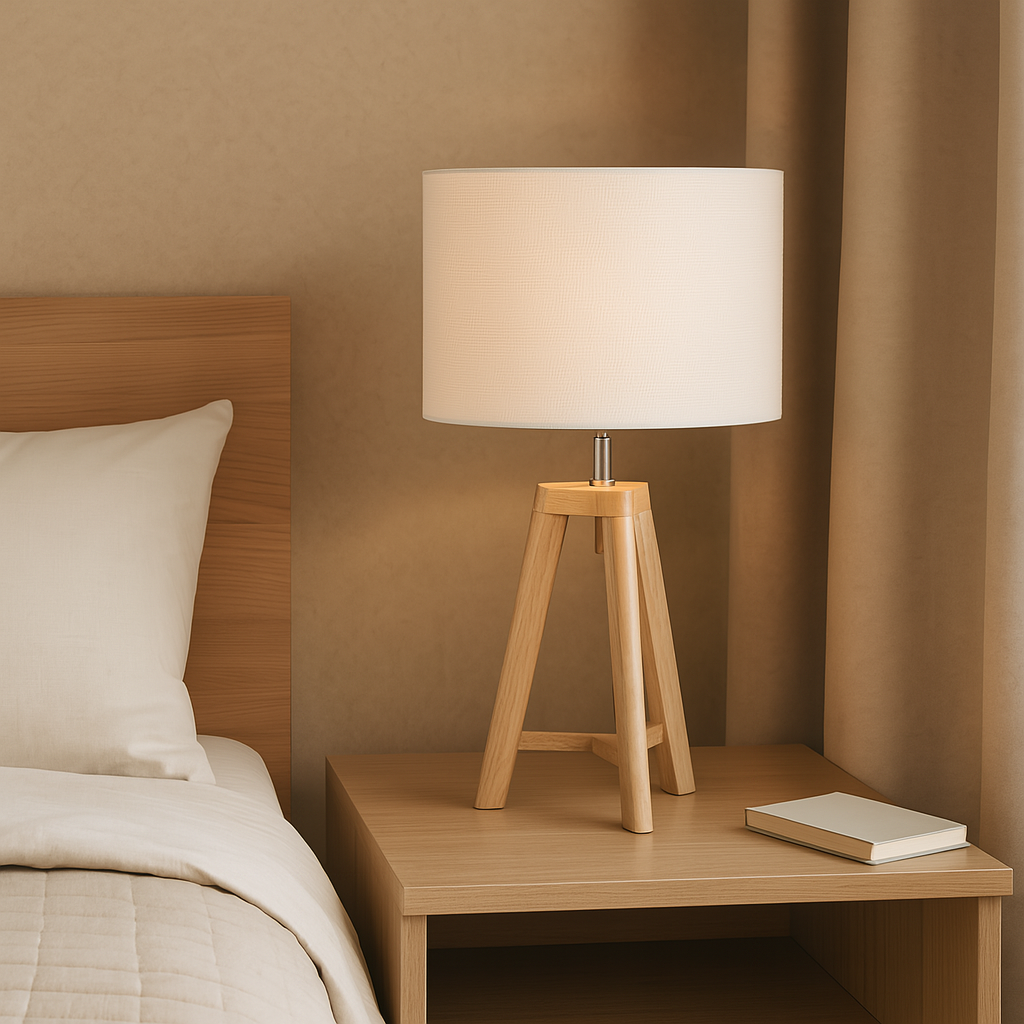 La Odin 02 combina la calidez de la madera real con la pureza de una pantalla cilíndrica de tela blanca, creando un punto de luz limpio y contemporáneo. Con 56 cm de alto y 27 cm de diámetro, su base trípode aporta estabilidad y un toque escandinavo ideal para mesitas de noche, escritorios o aparadores. Incorpora un portalámparas E27 (hasta 40 W; bombilla LED no incluida) y se enciende mediante interruptor en el cable. Su diseño minimalista realza ambientes nórdicos, boho o modernos, aportando luz suave y estilo natural sin recargar la decoración.