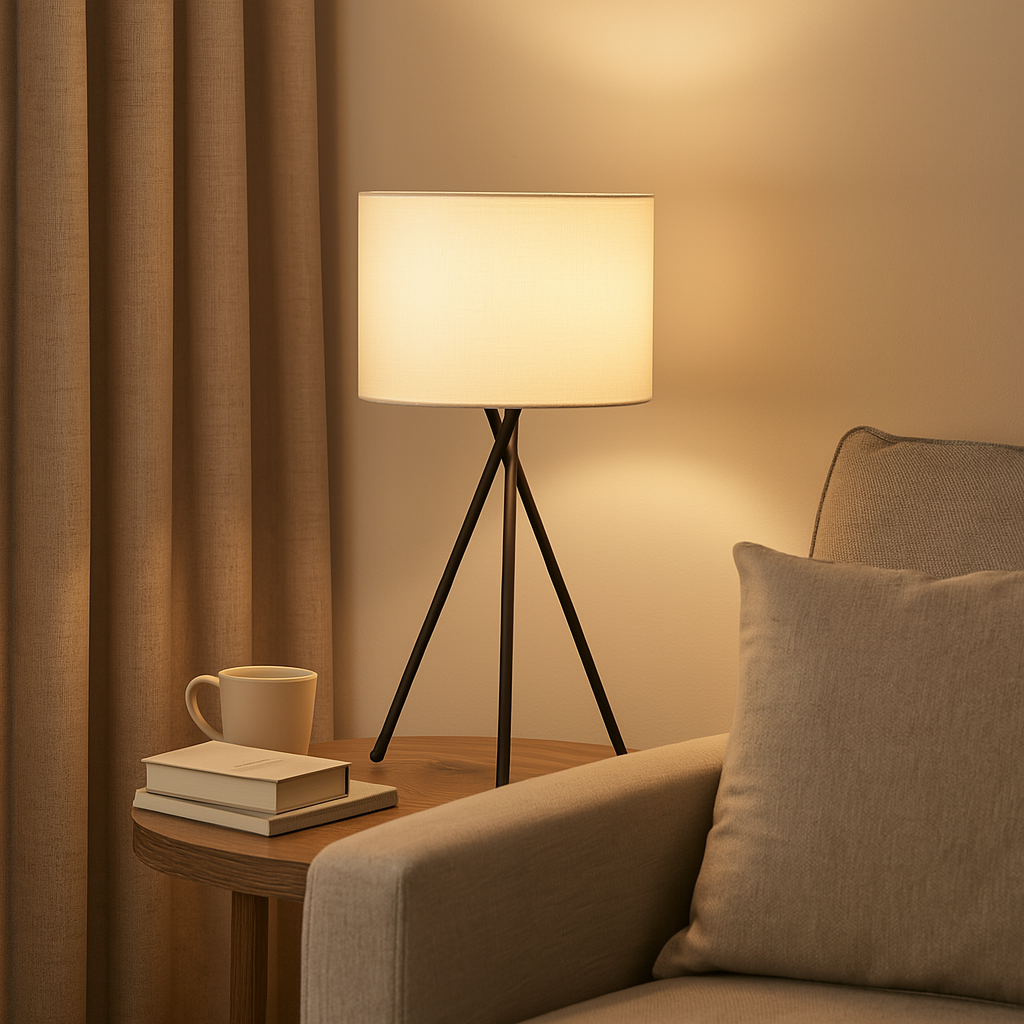 Moderna y minimalista, esta lámpara de mesa destaca por su base trípode en metal negro mate y su pantalla cilíndrica blanca que difunde una luz cálida y uniforme. Con un diámetro de 30 cm y 50 cm de altura, es ideal para mesitas de noche, escritorios o aparadores. Funciona con portalámparas E27 (bombilla LED no incluida) y se enciende fácilmente con el interruptor en el cable. Su diseño contemporáneo encaja a la perfección en ambientes nórdicos, industriales o modernos, aportando estilo y luminosidad sin recargar el espacio.