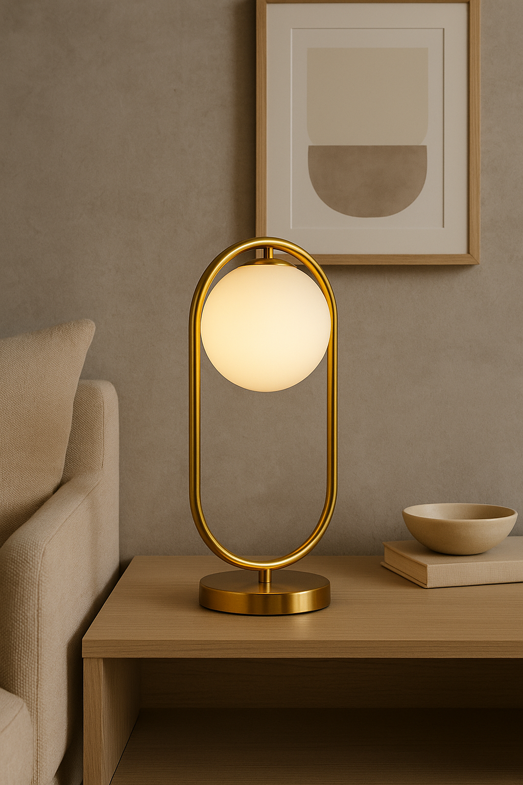 La lámpara de mesa ROMINA combina diseño moderno y elegancia minimalista en una pieza ideal para iluminar y decorar cualquier ambiente. Fabricada en metal con acabado dorado, integra un sistema LED que ofrece luz suave y eficiente, creando una atmósfera cálida y sofisticada.