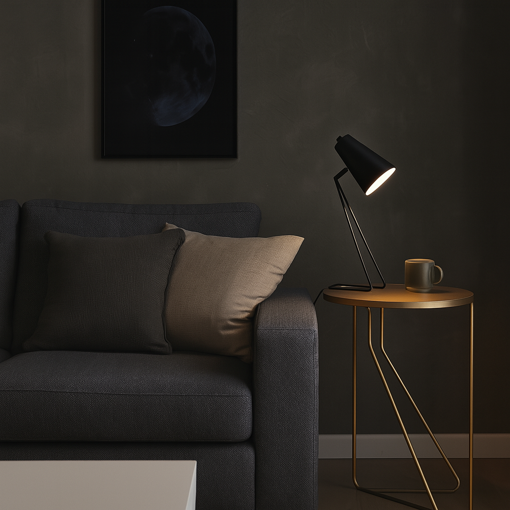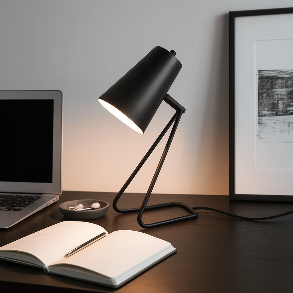Minimalista y elegante, la versión negra de la San Petersburgo combina una pantalla cónica de aluminio pintado con una base geométrica en hierro, ambos acabados en negro mate. La luz se proyecta en un haz focal que resulta ideal para tareas de lectura o trabajo. Con 49 cm de alto y 14 cm de diámetro, ofrece un perfil estilizado que encaja en escritorios, mesas auxiliares o mesas de noche. Utiliza bombilla E14 (máx. 40 W, no incluida) y cuenta con cable textil negro con interruptor. Perfecta para ambientes industriales, nórdicos o contemporáneos, añade un toque sofisticado sin sobrecargar el espacio gracias a su diseño limpio y monocolor.