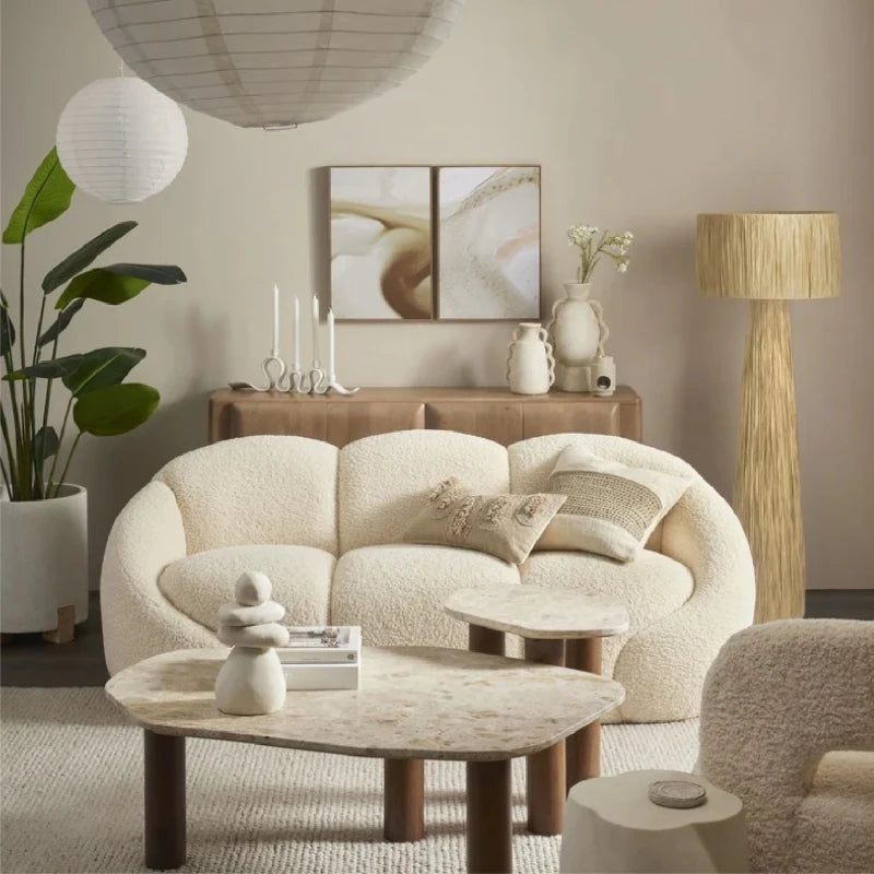 Lámpara de pie de fibras naturales trenzadas, 115 cm de alto y pantalla de 40 cm de diámetro. Su diseño monolítico y ligero difusor orgánico proyecta una luz cálida que realza materiales neutros y texturas de espacios boho, japandi o nórdicos. Equipada con portalámpara E27 para bombilla LED de hasta 10 W (no incluida). Fabricada sin barnices tóxicos, cada pieza presenta variaciones artesanales que aportan carácter y calidez a livings, rincones de lectura o dormitorios amplios.