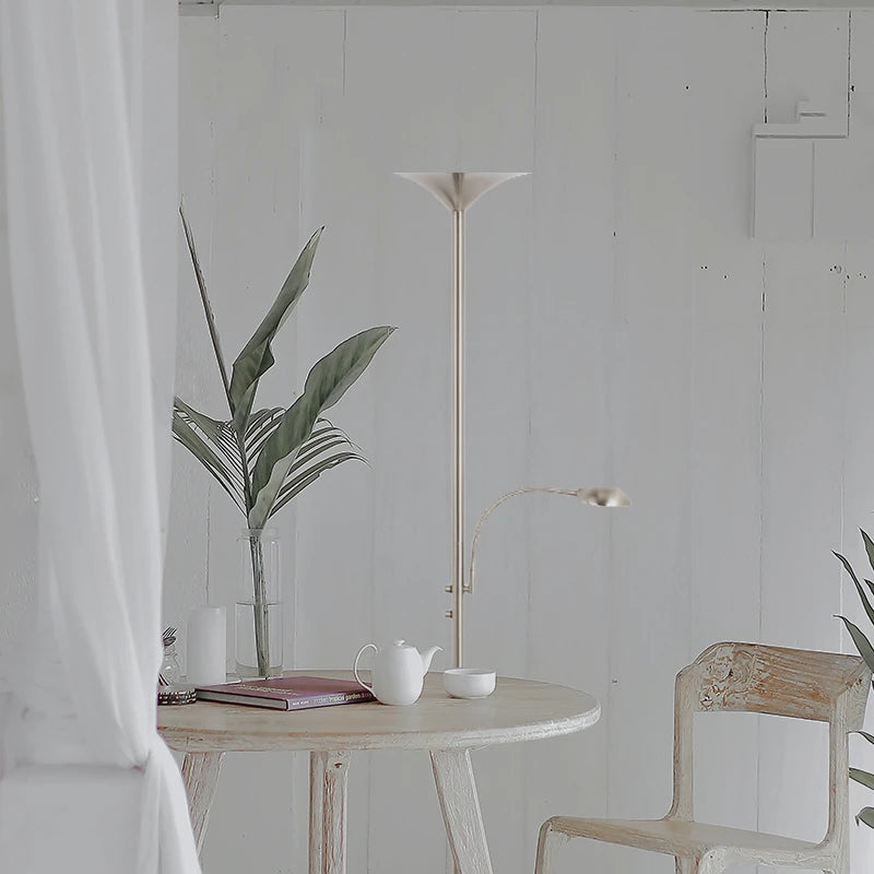 Equipada con luz principal de 30W (3000 lm) y una lámpara de lectura adicional de 5W (450 lm), ambas en temperatura cálida de 3000K, ofrece una iluminación confortable y funcional. Su diseño incorpora un brazo de 40 cm con luz auxiliar, ideal para crear un ambiente acogedor o acompañar momentos de lectura.