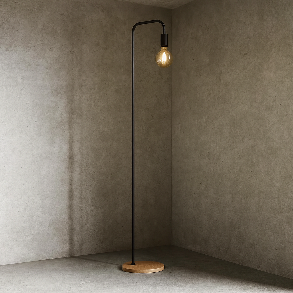 El artefacto decorativo de pie negro de la serie Miranda es una lámpara de piso que combina diseño contemporáneo y funcionalidad. Cuenta con un portalámparas E27 para una bombilla, permitiendo una iluminación adaptable según sus necesidades. Su estructura en metal negro junto con la base de madera aporta un equilibrio estético entre modernidad y calidez natural. Con unas dimensiones de 300 x 300 x 1600 mm, esta pieza ofrece una presencia destacada en cualquier ambiente, ideal para espacios residenciales o profesionales que requieran una solución luminosa elegante y duradera.