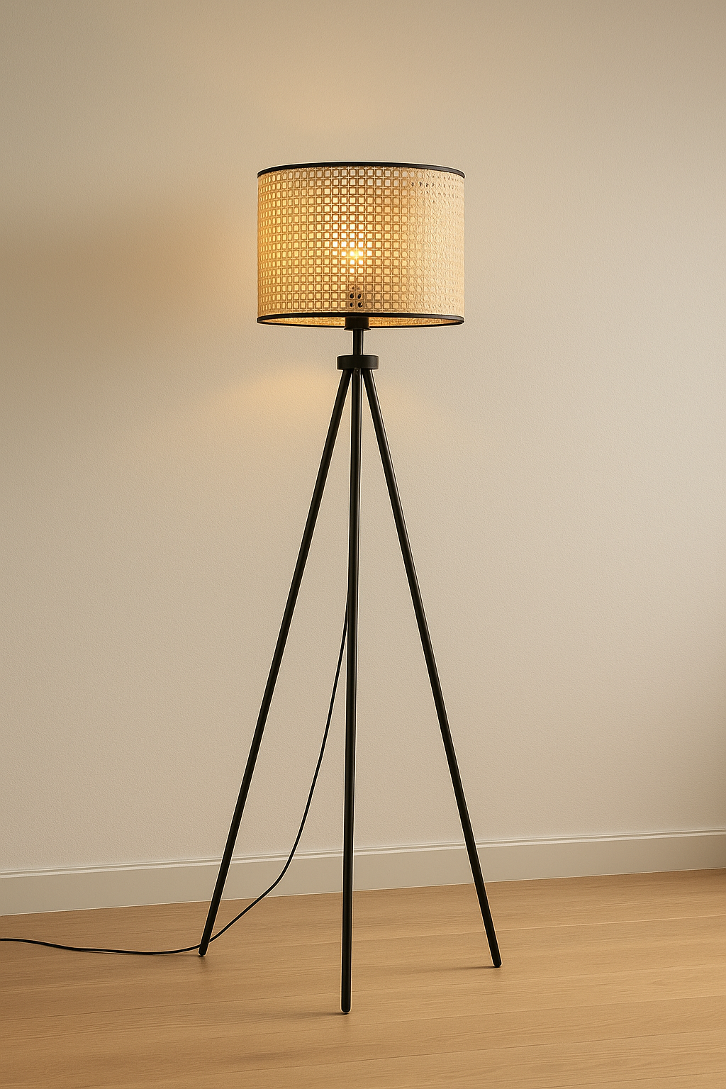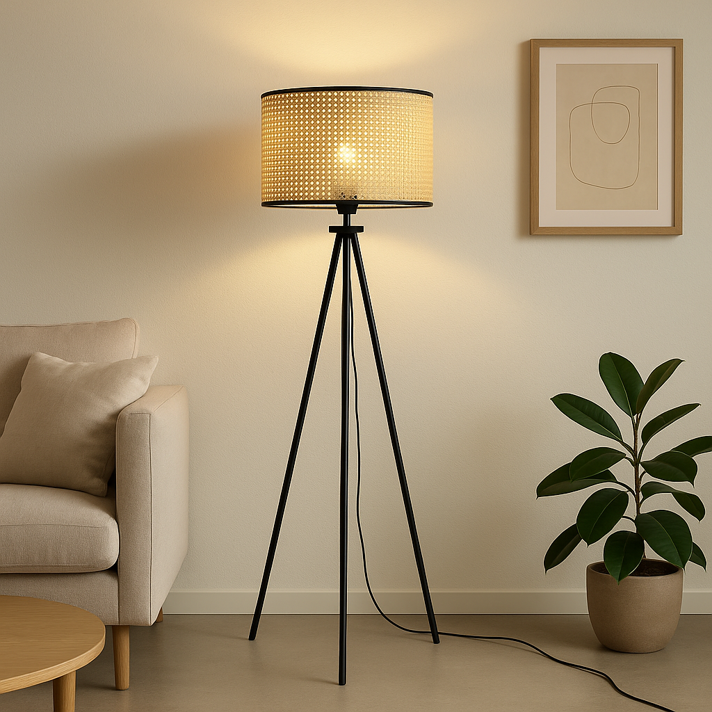 Ilumina tus espacios con estilo y calidez con la lámpara de pie ORLANDO, una pieza que combina diseño minimalista y materiales naturales para lograr un ambiente moderno y acogedor.