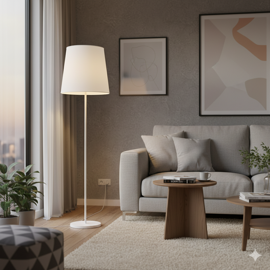 Color: White lamp body + White shade. EU plug, with foot switch on the wire