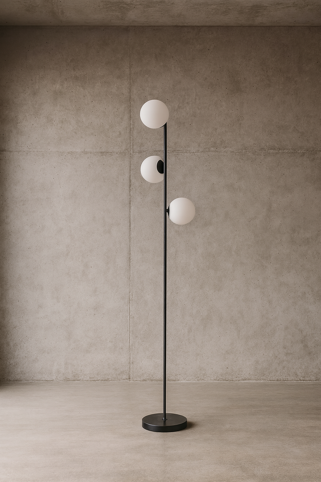 El ARTEFACTO DECORATIVO DE PIE VOLOS en color negro destaca por su diseño sofisticado y funcionalidad avanzada, ideal para realzar cualquier espacio interior con estilo. Cuenta con un portalámparas tipo E14, compatible con diversas bombillas que permiten adaptar la iluminación según sus necesidades específicas. Sus dimensiones de 230 mm de diámetro y 1500 mm de altura proporcionan una presencia elegante sin resultar invasiva. La pantalla de vidrio aporta un acabado refinado y permite una difusión uniforme y suave de la luz, creando una atmósfera cálida y acogedora. La estructura, compuesta por un brazo y plafón de metal resistente, garantiza durabilidad y estabilidad a largo plazo, convirtiéndolo en una opción excelente para ambientes residenciales o profesionales que busquen un equilibrio entre diseño y robustez.