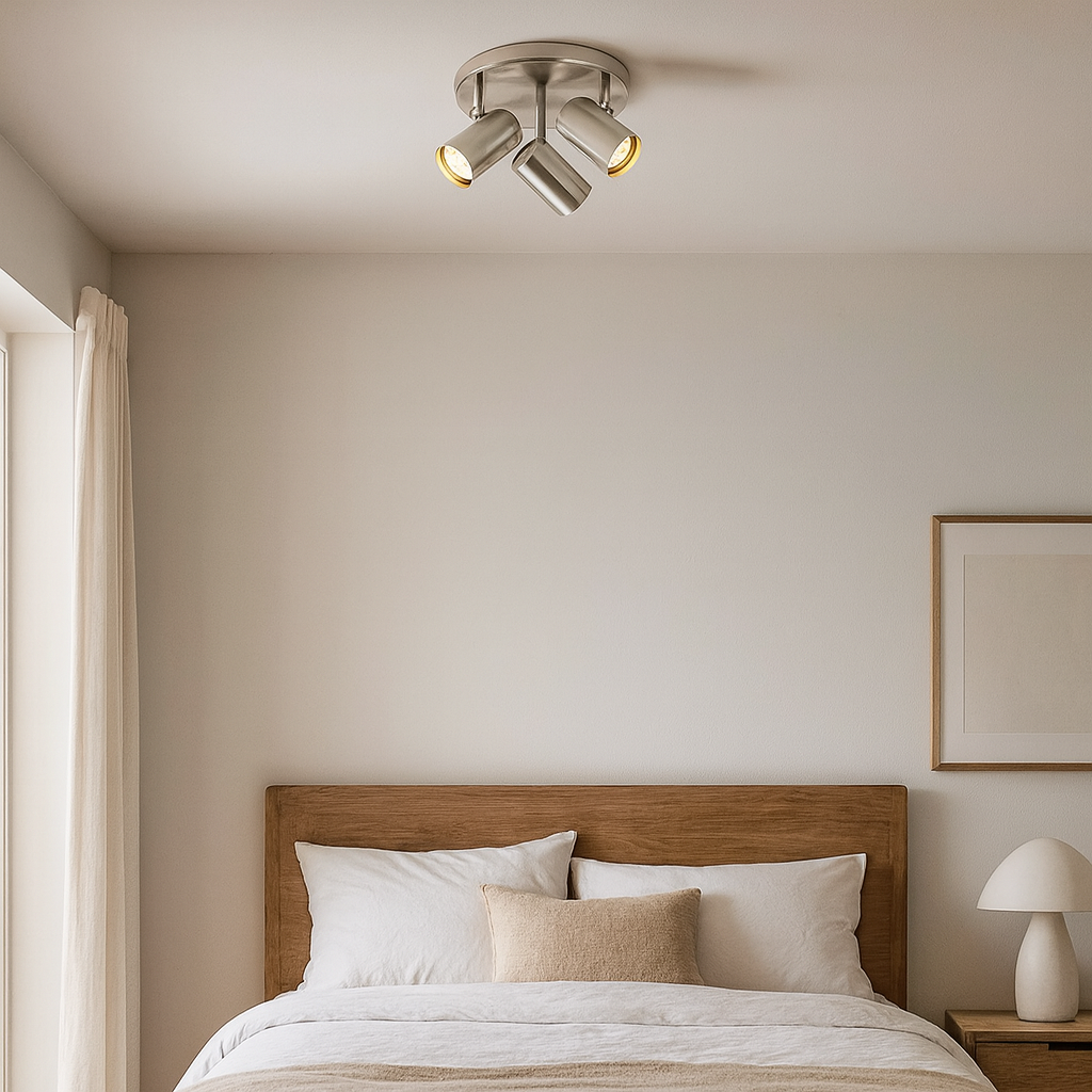 El ARTEFACTO LETICIA ADOSAR CIRCULAR ORIENTABLE (X3) está diseñado para brindar una iluminación precisa y versátil en espacios interiores. Cuenta con tres focos orientables equipados para bombillas GU10 (no incluidas), ideales para resaltar áreas específicas con una luz dirigida. Fabricado en aluminio y acero, ofrece durabilidad y un diseño moderno que se integra fácilmente en diversos estilos decorativos. Opera con una tensión de 220-240V y una frecuencia de 50/60Hz, con dimensiones de Ø250x150mm para la base y 55x80mm para cada lámpara. Su estructura circular y ajustable permite una instalación práctica y una iluminación personalizada.