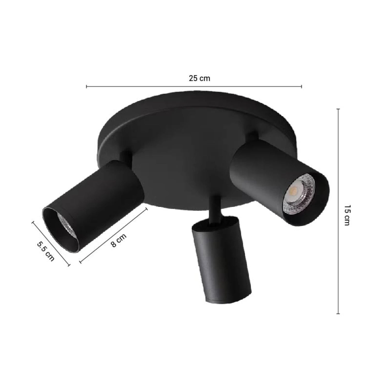 El ARTEFACTO LETICIA ADOSAR CIRCULAR ORIENTABLE (X3) en color negro es una solución de iluminación versátil y moderna, ideal para espacios que requieren un control preciso de la dirección de la luz. Cuenta con tres focos orientables GU10 que funcionan con una tensión de 220-240V y frecuencia de 50/60Hz, permitiendo ajustar cada punto de luz según las necesidades específicas del ambiente. Fabricado en aluminio y acero, ofrece una estructura resistente y duradera con dimensiones de Ø250x150mm, compacto para facilitar su instalación en diferentes áreas. Compatible con bombillas GU10 de 55x80mm (no incluidas), es perfecto para quienes buscan funcionalidad y estética en un solo producto.