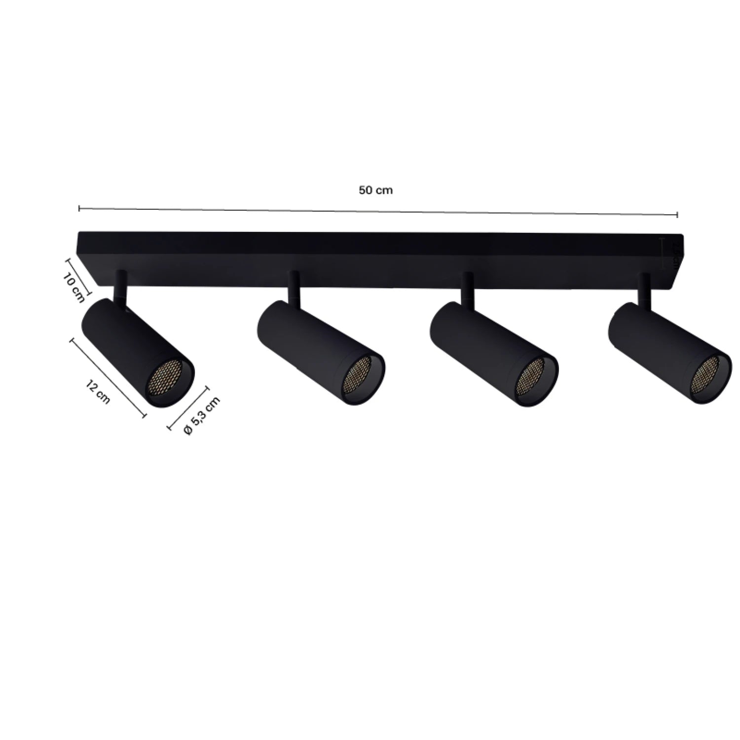 El ARTEFACTO LONG LETICIA ADOSAR ORIENTABLE (X4) en negro es un foco sofisticado y contemporáneo, diseñado para satisfacer necesidades de iluminación adaptables. Fabricado en aluminio robusto con base de red celular, mide 500 x 100 x 25 mm e incluye cuatro cabezales ajustables de 120 x 53 mm para una iluminación focalizada. Con clasificación IP20, apto para interiores, este foco admite cuatro bombillas GU10 (no incluidas), lo que ofrece flexibilidad para ajustar el brillo y la temperatura de color. Combinando un estilo limpio y minimalista con una funcionalidad práctica, es ideal para realzar espacios comerciales y residenciales mediante un control preciso de la iluminación.