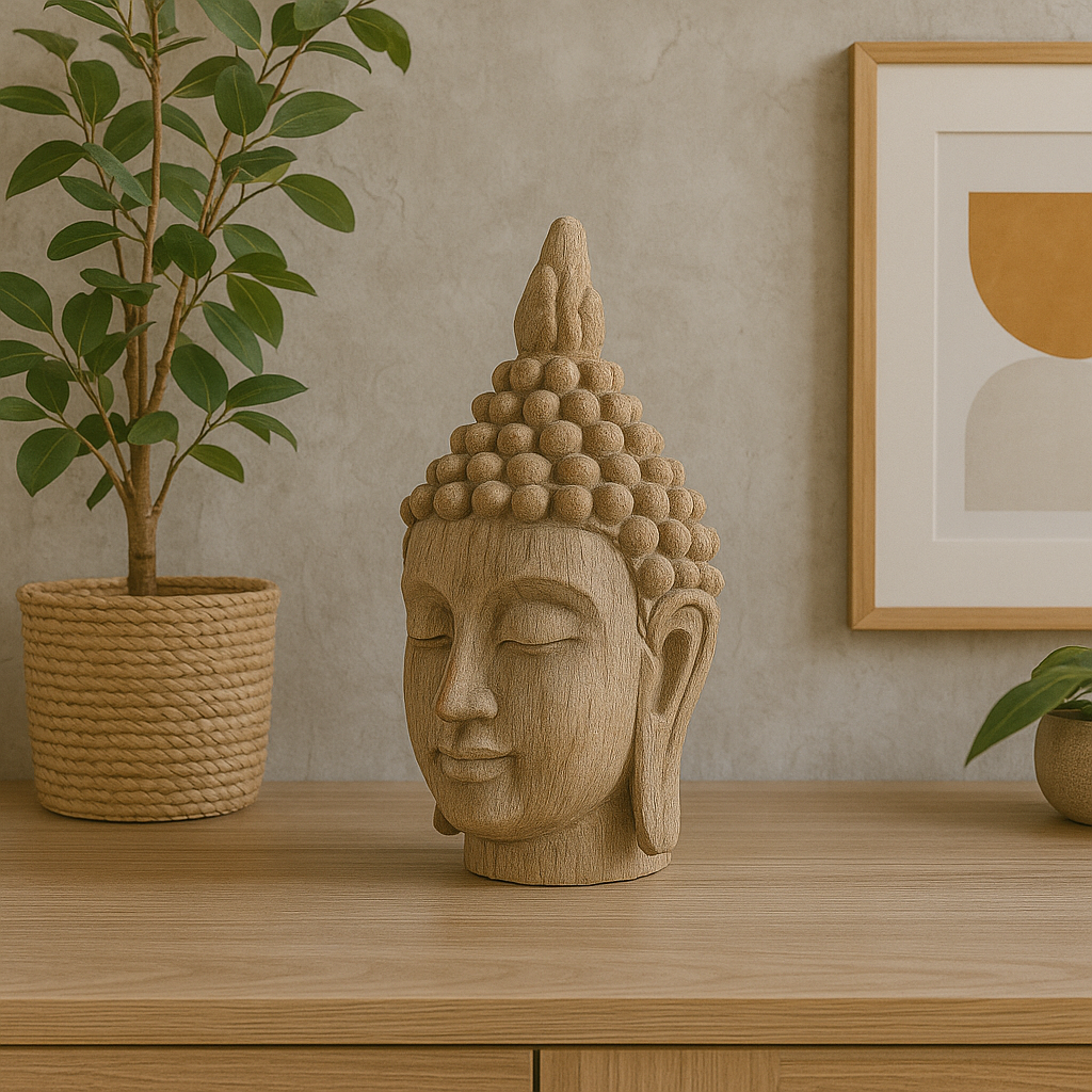 Incorpora un toque artesanal y espiritual a la decoración de tu hogar con nuestra Cabeza de Buda tallada en madera. Su acabado rústico y natural resalta cada detalle de la pieza, transmitiendo serenidad y equilibrio en cualquier ambiente. Ideal para complementar espacios minimalistas, boho o contemporáneos, aportando calidez y estilo.