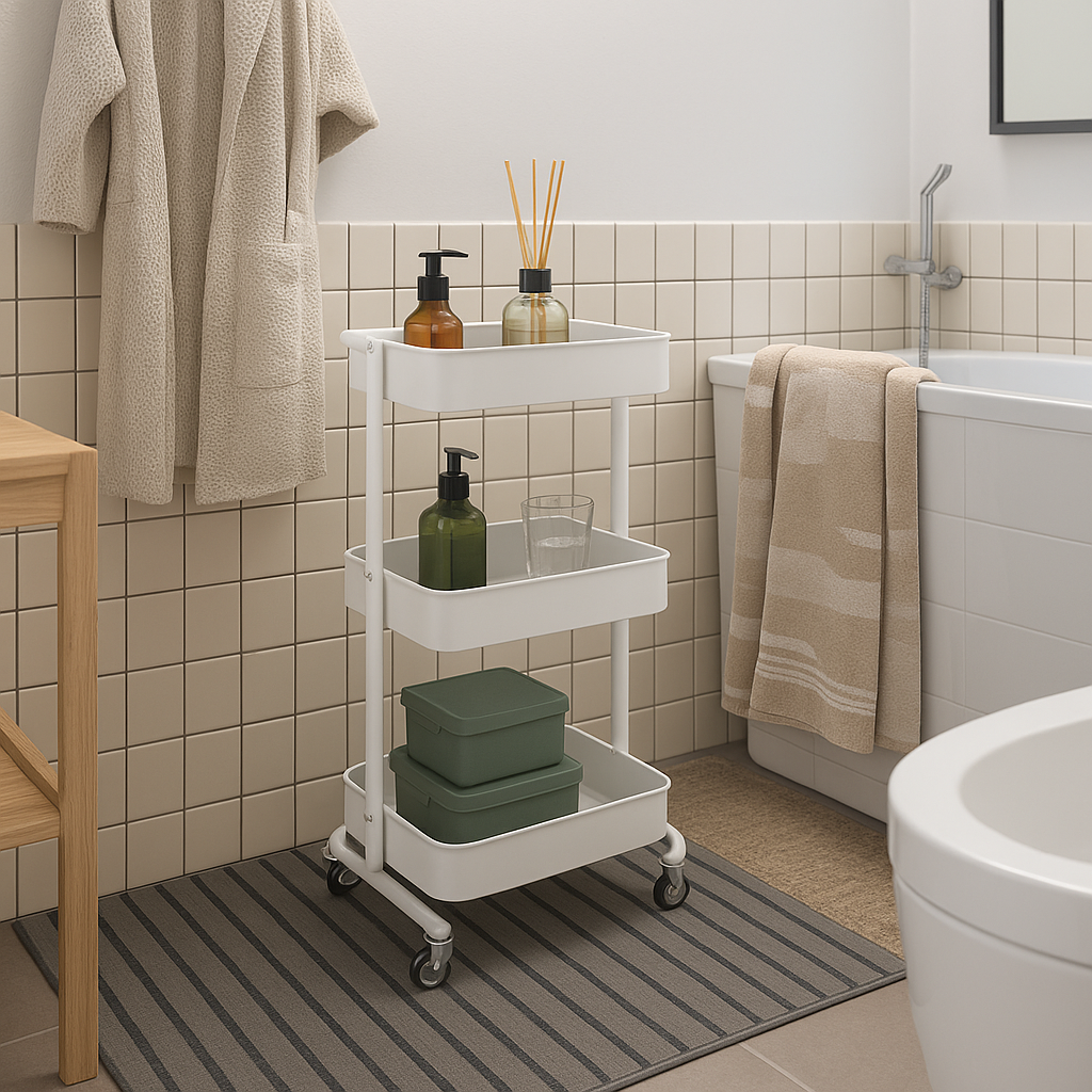 Carrito de 3 estantes con ruedas. Mové y organizá lo que necesites con estilo.