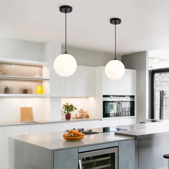 Colgante Globo Vidrio Opal c/ Acero Negro