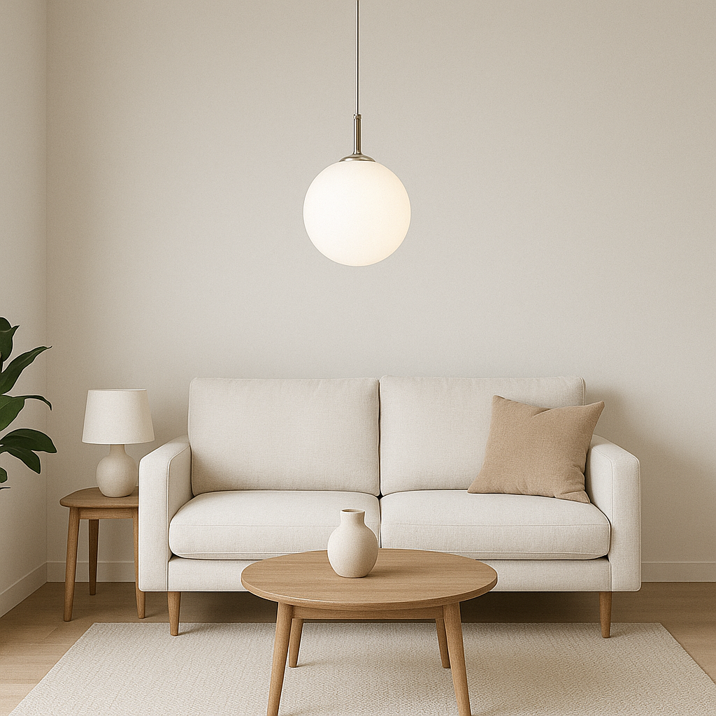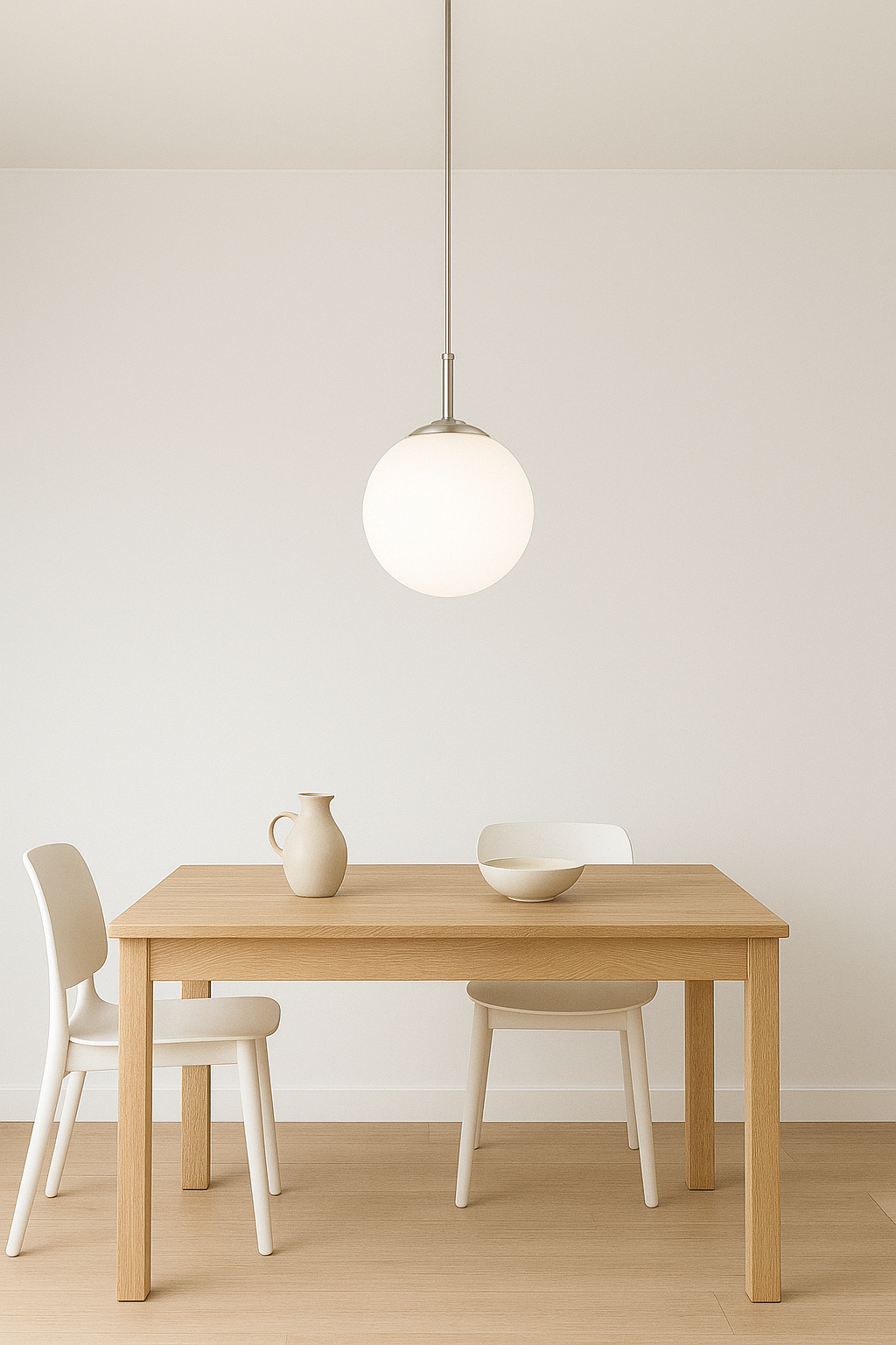 Colgante Globo Vidrio Opal c/ Acero Níquel