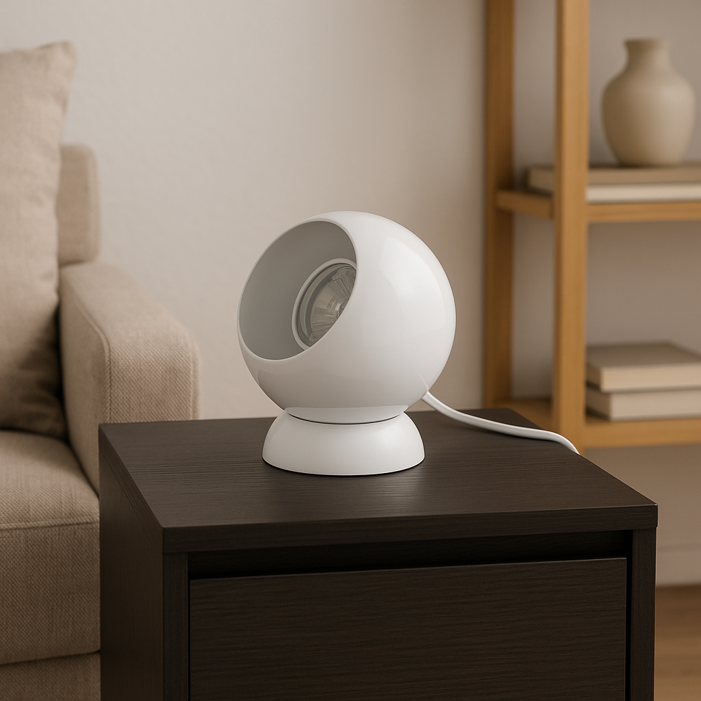 Compacta y funcional, esta lámpara de mesa en blanco ofrece una luz suave y cálida, perfecta para escritorios.