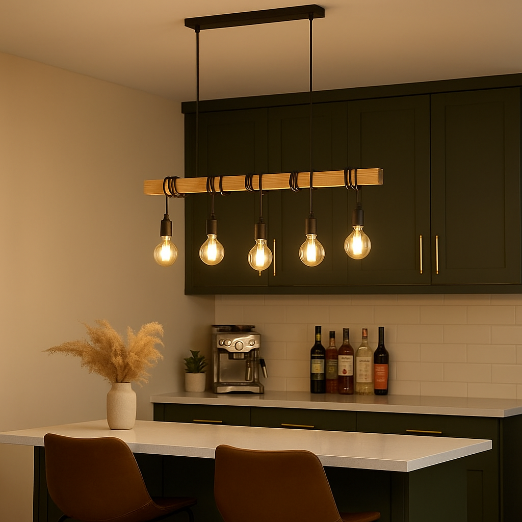Colgante Madera y Portalámparas Vintage 6xE27 Townshend - EGLO
