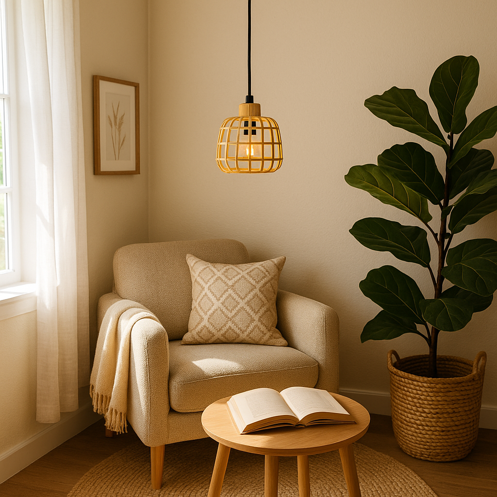 Colgante de acero negro con varillas de madera, 1 portalámparas E27, diámetro de 240mm. Su diseño contemporáneo combina lo mejor del estilo industrial con la calidez de la madera, ideal para iluminar cualquier ambiente.Medidas: Ø240mm. Altura máxima: 1500mm. Lamparita no incluida.