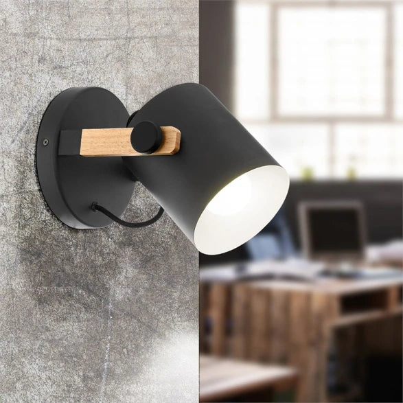 Aplique de pared con estructura de madera en forma cilíndrica, con base E27. Ideal para ambientes con un estilo vintage y cálido, proporcionando una iluminación suave y decorativa para interiores acogedores.