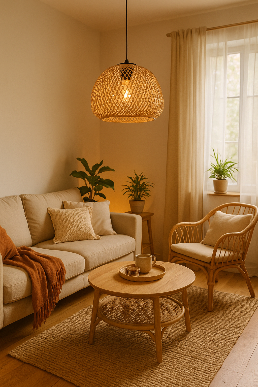 Colgante de estilo natural con varillas de madera tipo mimbre, 1 portalámparas E27, diámetro de 320mm. Ideal para crear ambientes cálidos y acogedores con un diseño único y elegante. Altura 1100 mm. Lamparita no incluida.