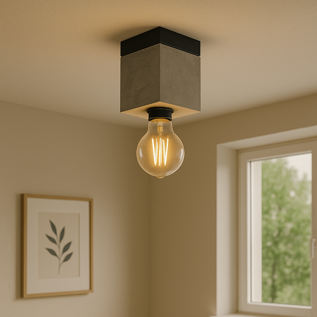 Aplique de techo de estilo vintage con diseño en cubo, combinando negro y gris, 1 portalámparas E27. Ideal para crear un ambiente acogedor con un toque industrial y clásico.