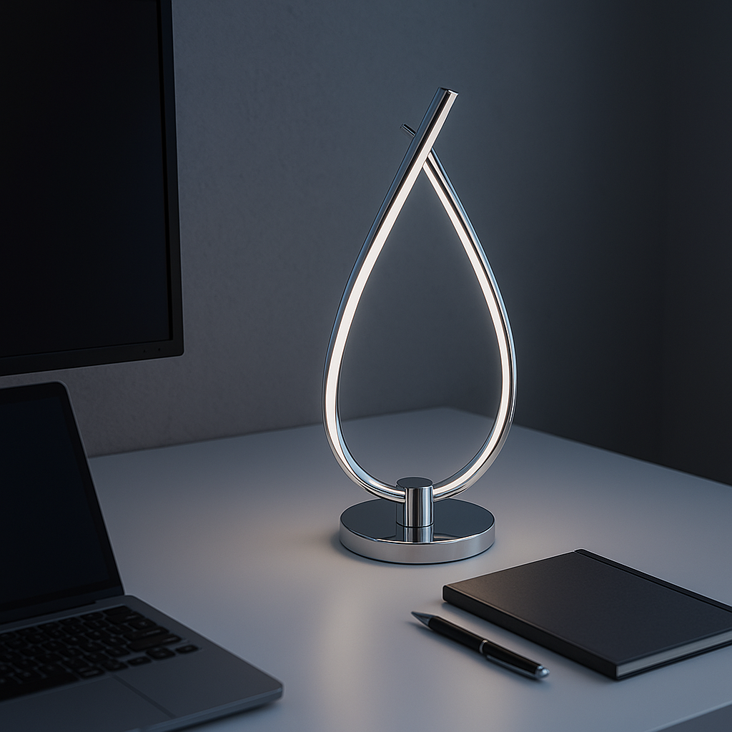 Lámpara de mesa LED con diseño moderno y eficiente, perfecta para iluminar de manera suave y cálida.
