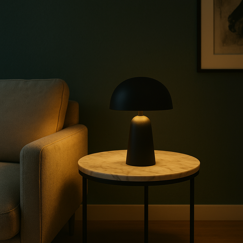 Lámpara única con forma de hongo, que combina modernidad y estilo en un diseño que destaca en cualquier espacio.