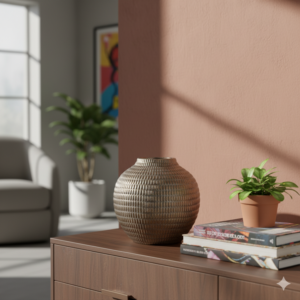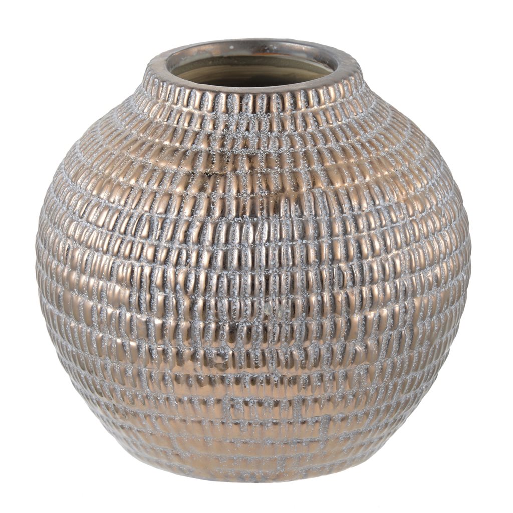 Añade un toque de elegancia y modernidad a tu hogar con nuestro Florero Grande. Su diseño esférico con rica textura en relieve y acabado metálico dorado/bronce lo hace ideal para quienes buscan detalles cuidados y una pieza central impactante. Perfecto para arreglos florales grandes o como elemento decorativo por sí mismo.