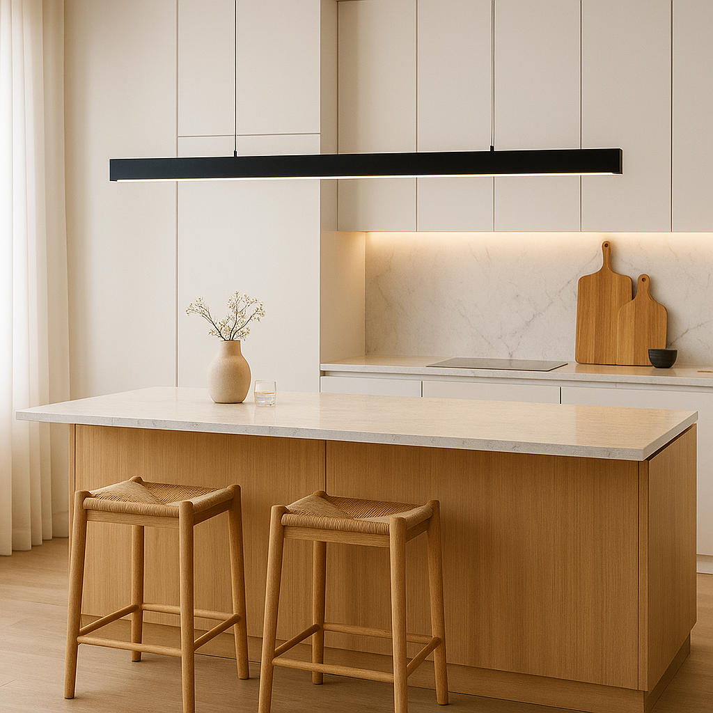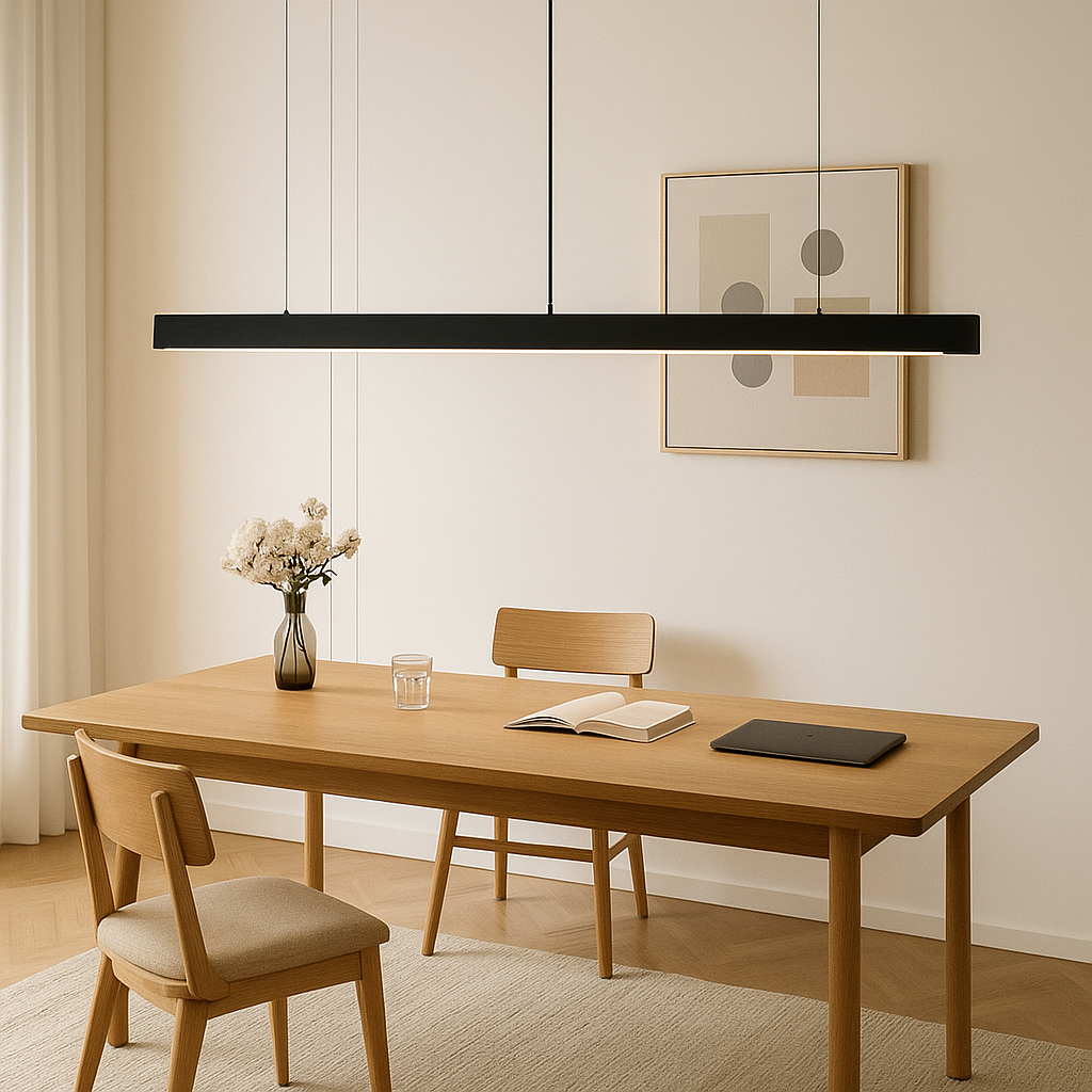 Luminaria lineal con difusor opal, 40W de potencia, temperatura de color 3000K y 4000 lúmenes. Con un ángulo de dispersión de 120°, esta lámpara es perfecta para iluminar grandes áreas con luz uniforme y cálida. Medidas: 1065x33x70mm.