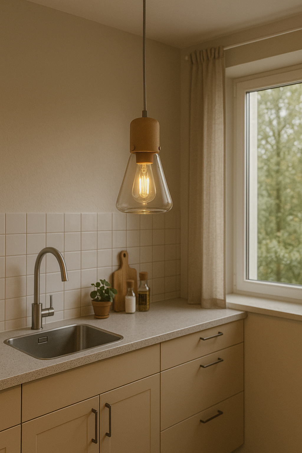 Colgante con diseño cónico de vidrio ámbar y base de metal, base E27. Su diámetro de 16,5cm lo hace ideal para iluminar áreas pequeñas o focalizadas, aportando un toque cálido y moderno a cualquier espacio. Lamparita no incluida.